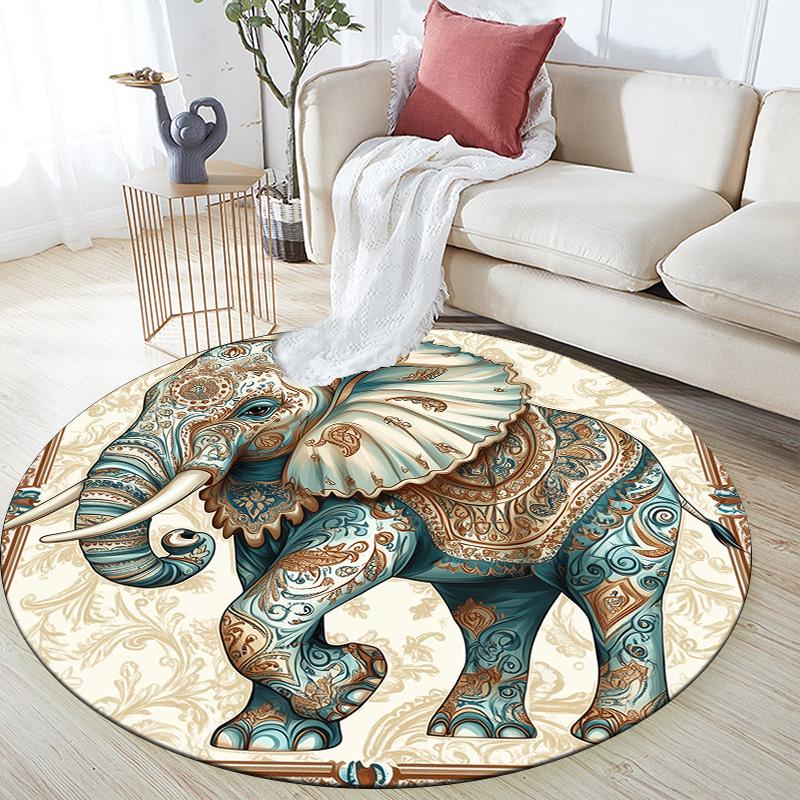 Vintage Elephant,Round Area Rug,Carpet Rug for Living Room Bedroom Sofa Playroom Decor,Non-slip Floor Mat
