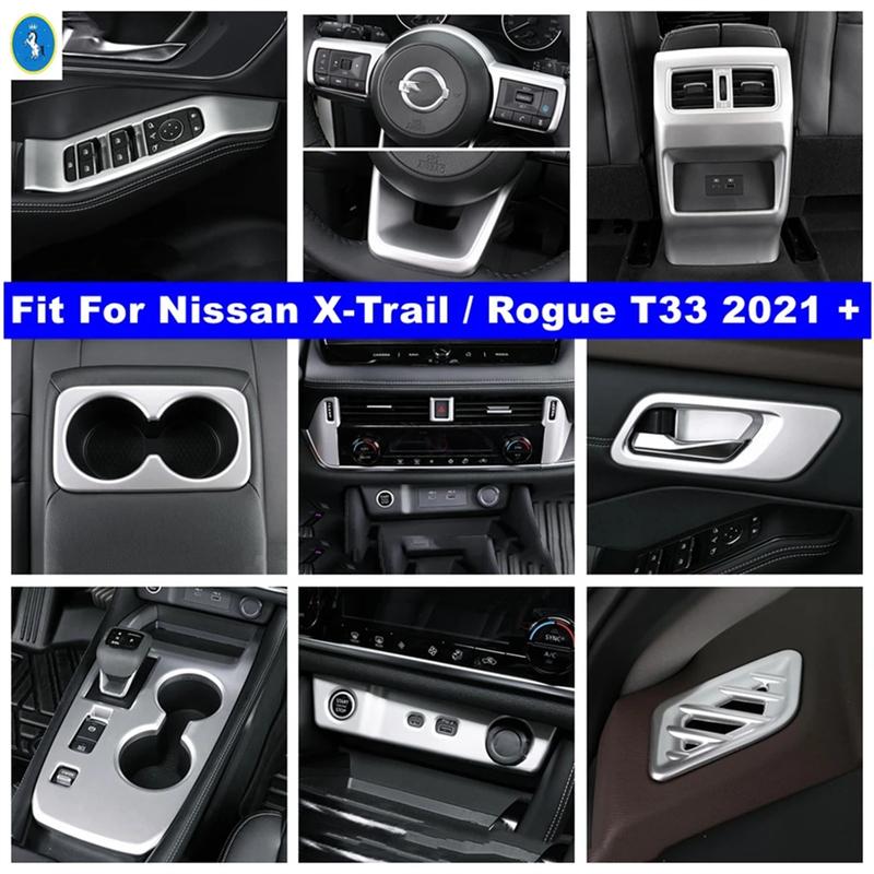Matte Car Water Cup Holder / Gear Shift Lift / Air AC Accessories Cover Trim For Nissan X-Trail X Trail / Rogue T33 - 2026