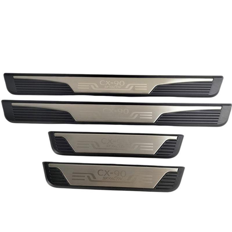 4PCS Plastic Stainless Steel For -2024 Mazda Cx-90 Car Accessories Auto Door Sill Pedal Welcome Scuff Plate Cover