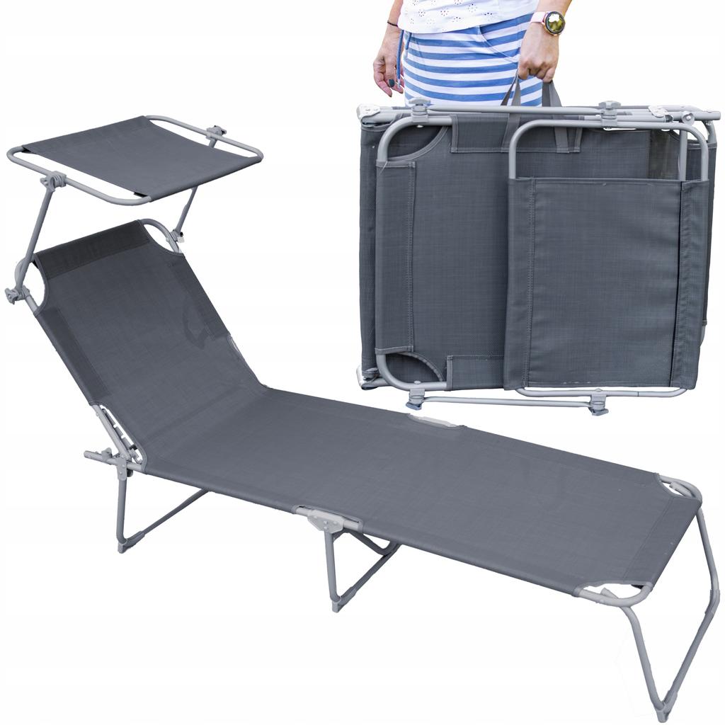 Foldable Garden Lounge With Roof Grey Steel Beach Chair Sun Chair