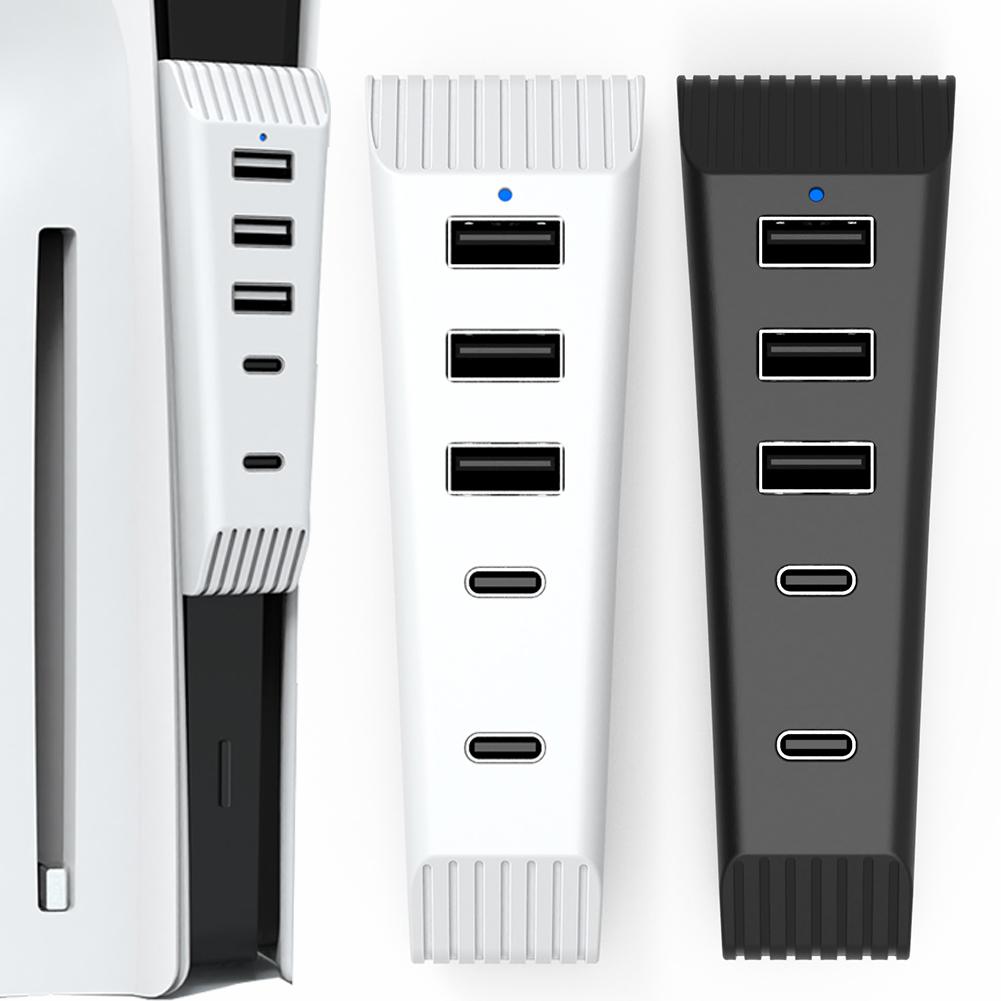 5 In 1 USB Hub High-Speed Extra USB Port Extender with 3USB + 1 Type C Port+ 1Type-C 3.1 for PS5 Slim Console Disc & Digital