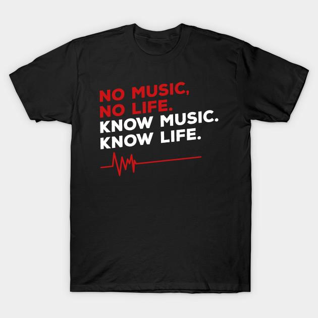 Men Black Print T-shirt No Music, No Life. Know Music. Know Life. No-Cut Transfer Paper Print Cotton Tshirt