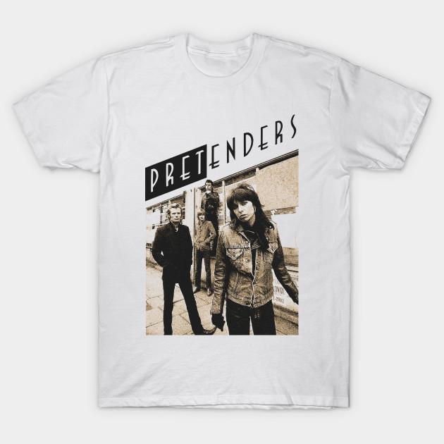 Men Black Print T-shirt Vintage The Pretenders No-Cut Transfer Paper Print Cotton Tshirt