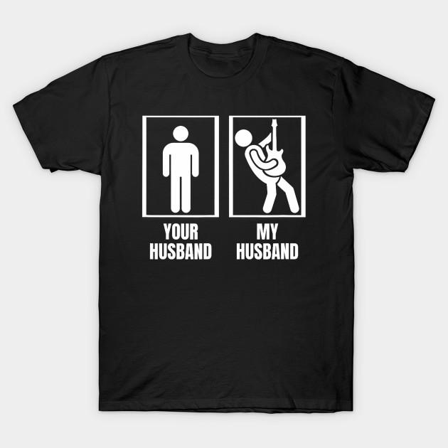 Men Black Print T-shirt Your Husband My Husband Bass Guitar Wife Funny Bass Player No-Cut Transfer Paper Print Cotton Tshirt