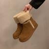 Flip-over Snow Boots, Women's Four-season Foreign Style Two Wear Non-slip Warm Medium Tube Short Boots, Velvet Northeast Large Cotton Shoes