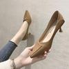 3Cm Not Tired Feet High Heels Annual Thin Heel 5cm Pointed Soft Leather Middle Heel Single Shoes Shallow Mouth Work Shoes