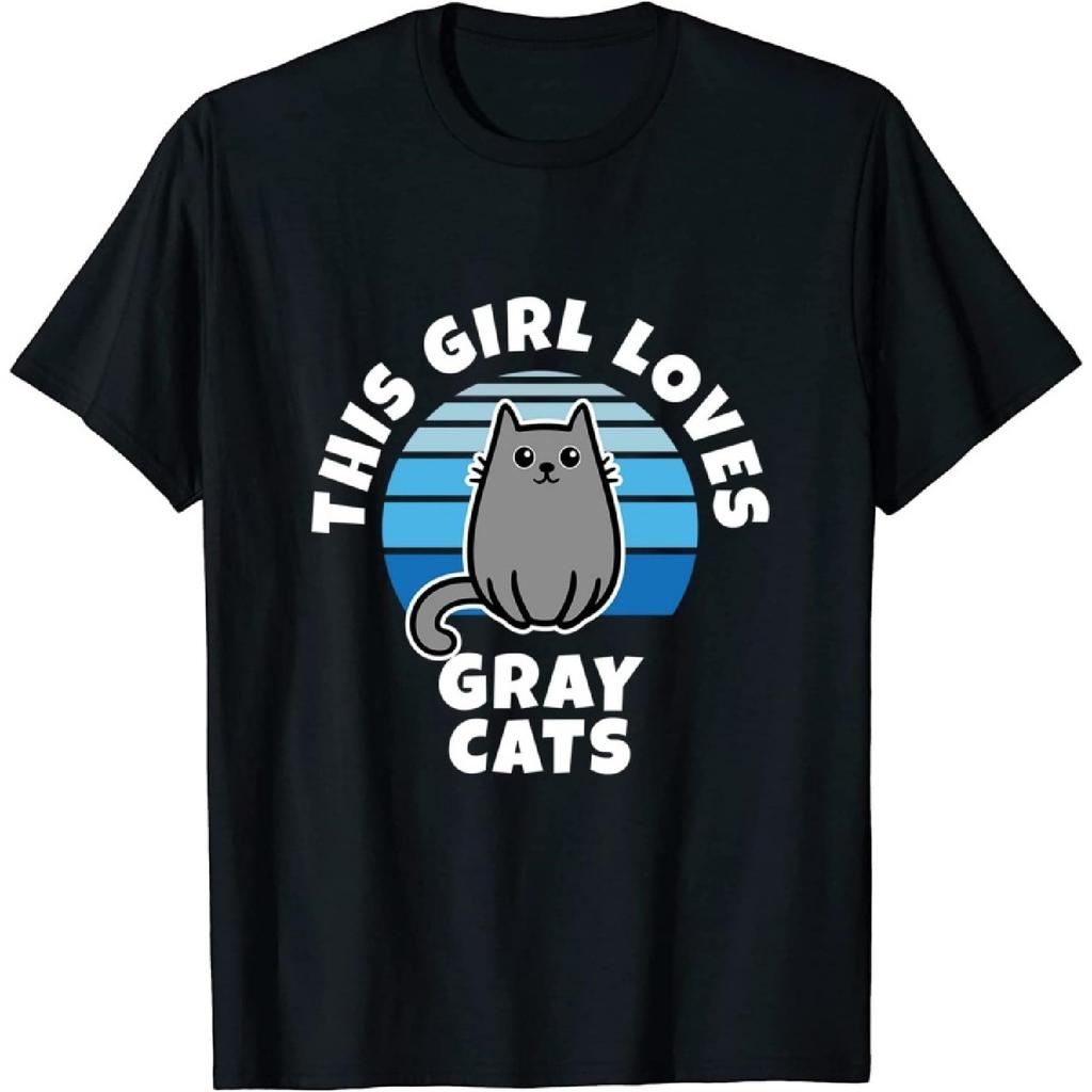 This Girl Loves Gray Cats British Shorthair Cat Design T-Shirt Sweatshirt Hoodie Tank Top V-Neck for Men Women Kids