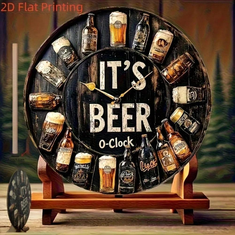 Metal Wall Art Round Beer Clock Sign Pub Bar Decor