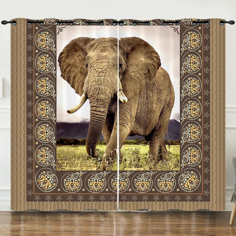 Curtain African Elephant Animal 3D Digital Printing Blackout Curtain Punching