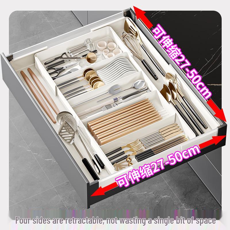 Retractable Kitchen Drawer Organizer with Removable Dividers - Deep Cabinet Storage Tray