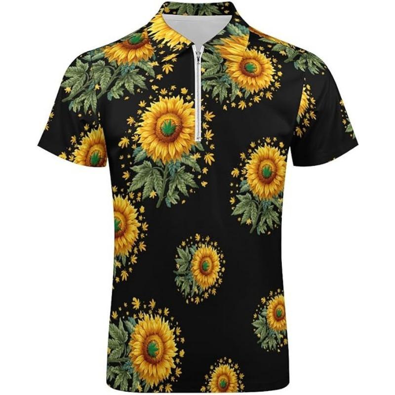 Sunflower Weed Leaf Plant Mens Zip Up Polo Shirts Casual Short Sleeve Golf Collared Shirt Slim Fit Tee Top