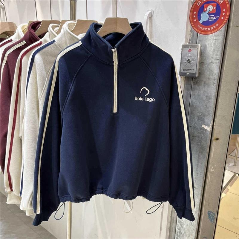 Half Zip Stand Up Collar Sweatshirt Retro Striped Long Sleeved Pullover Casual Streetwear Top