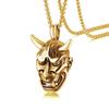 Necklace Domineering Bull Horn Prajna Face Steel Color Men's Ghost Face Casting Pendant