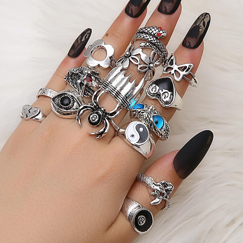 Retro Animal Ring Exaggerated Owl Spider Ring 15-piece Set