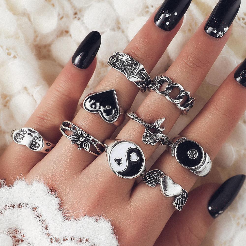 Retro Ring Dripping Oil Love Butterfly Chain Snake Shape 9 Piece Set Ring