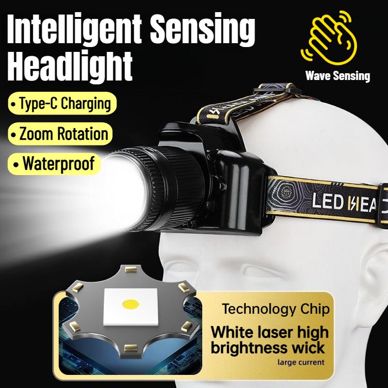 Multifunctional Sensing Powerful LED Headlamp Rotate Telescopic Zoomable Head Torch Outdoor Waterproof Rechargeable Fishing Camping Portable Headlight