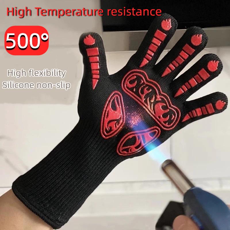 High Temperature Silicone Gloves Heat Resistant Up To 500℃ Non Slip Fireproof Insulated Oven Cooking BBQ Gloves