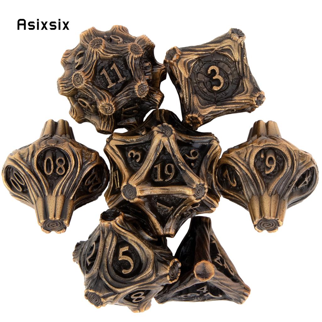 7 Pcs Yellow Tree Stump Root Metal Dice Solid Metal Polyhedral Dice Set Suitable for Role-Playing RPG Board Game Card Game