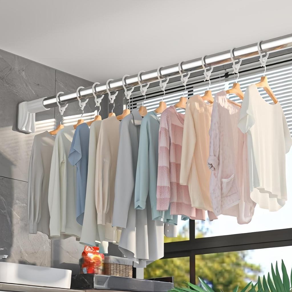 Adjustable Stainless Steel Shower Curtain Rod Clothes Drying Rack No-Drill Telescopic Pole for Laundry Room Bathroom