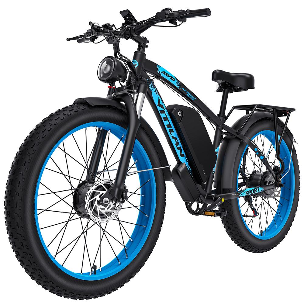 Electric Bicycle Adult Vitilan H5 24" Fat Tire 1000Wx2 Motor LCD Display 52V 25AH All Terrain Ebike Shimano 7 Speed Blue