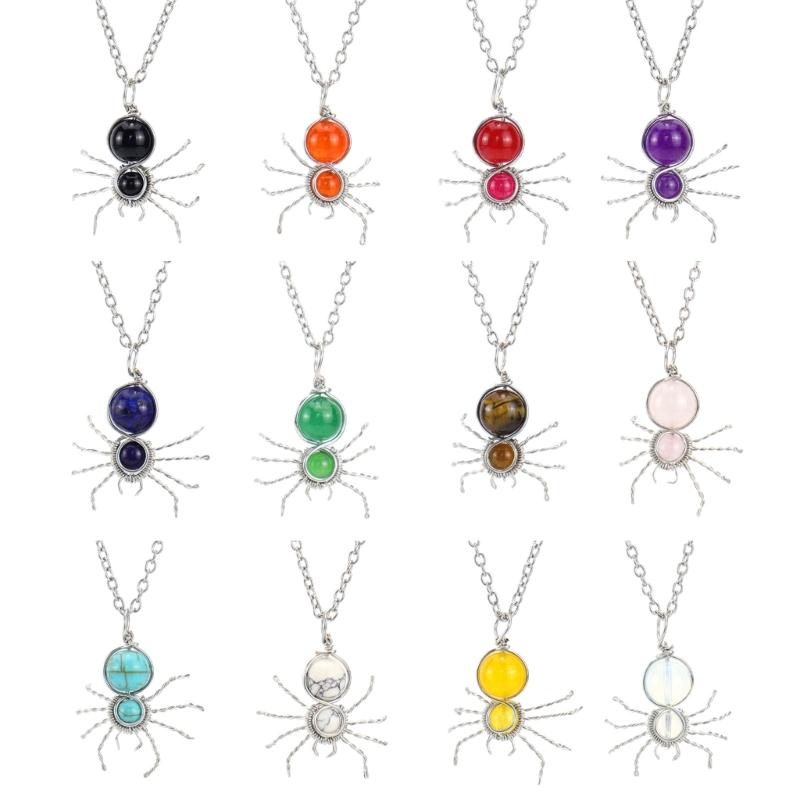 Handmade Colorful Rough Stone Necklaces Crystal Spiders Pendant Neckchains Adjustable Length Chain Jewelry Accessories