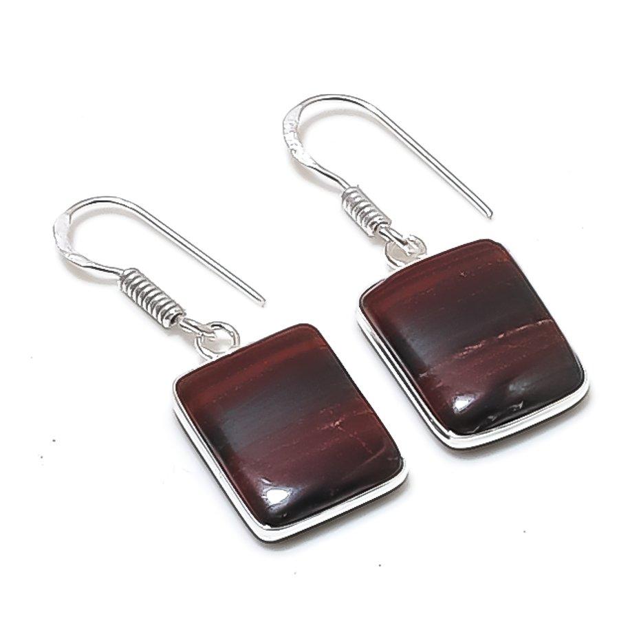Natural Red Snakeskin Gemstone 925 Sterling Silver Jewelry Earring 1.38" AEE-11179