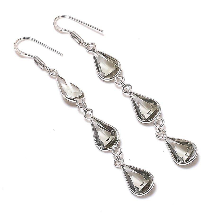Natural Smoky Topaz Gemstone 925 Sterling Silver Jewelry Earring 2.99" AEE-11291