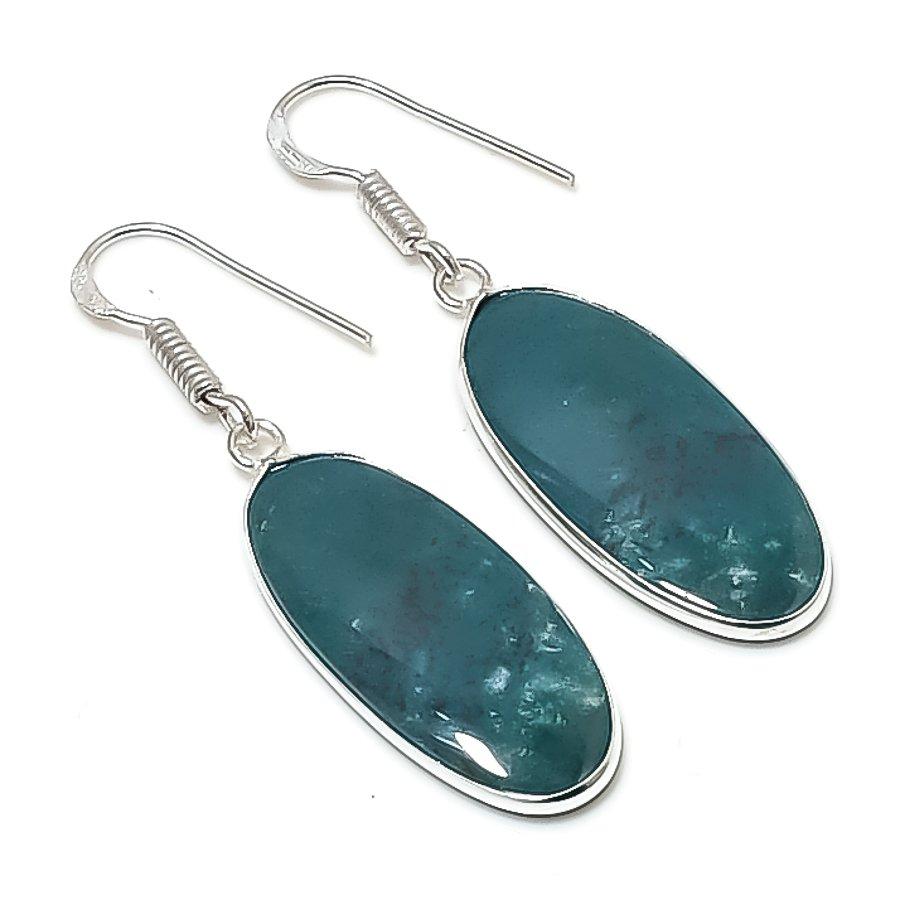 Natural Indian Moss Agate 925 Sterling Silver Jewelry Earring 1.89" AEE-11087
