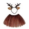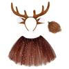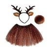 Package 1: Deer Ear Headband. Package 2: Deer Ear Headband and Skirt. Package 3: Deer Ear Headband, Nose and Skirt. Package 4: Deer Ear Headband, and Tail. Package 5: Deer Ear Headband, Nose and Tail. Package 6: Deer Ear Headband, Tail and Skirt.