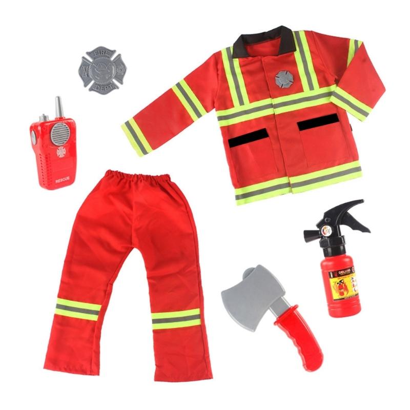 Halloween Fireman Costume Kids Fireman Ouftits Extinguisher Hatchets Washable Firefighter Dress Up Clothes for Role Play