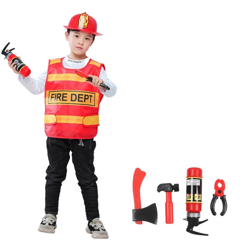 Kid Firefighter Dress Up Outfits Boys Firefighter Costumes Firefighter Dress Up Vest with Firefighter Hat for Halloween