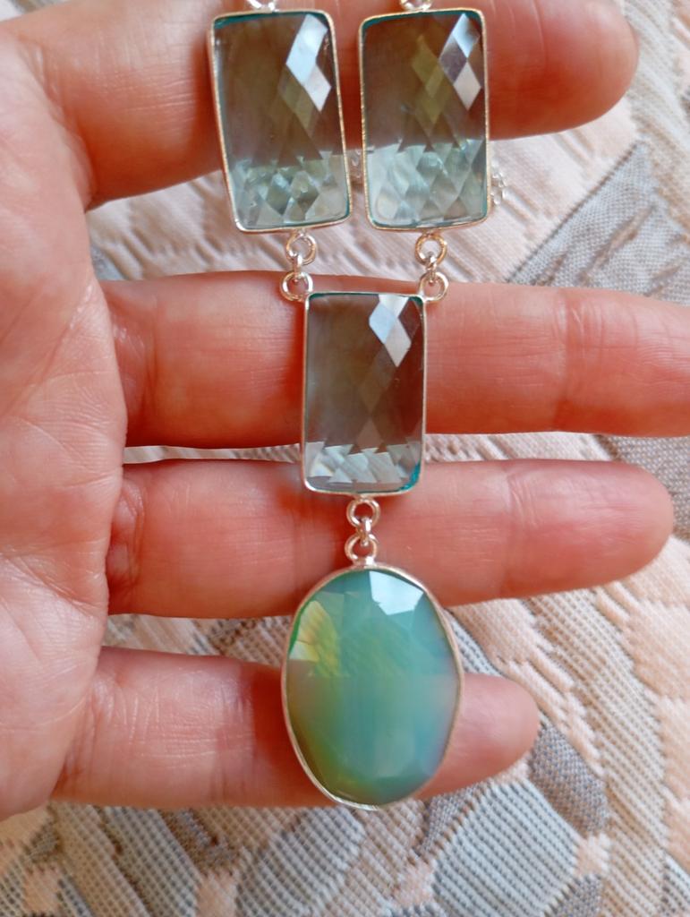 Natural Fire Opal, Topaz Gemstone 925 Sterling Silver Jewelry Necklace 18" ASN-5907