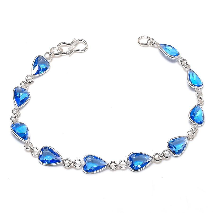 Natural Swiss Blue Topaz Gemstone 925 Sterling Silver Bracelet 7-8" ASB-2967