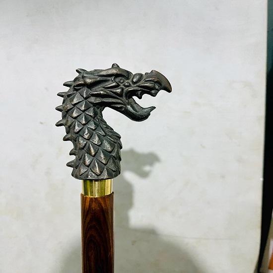 Handcrafted Dragon Head Walking Cane Gothic Cosplay Walking Stick