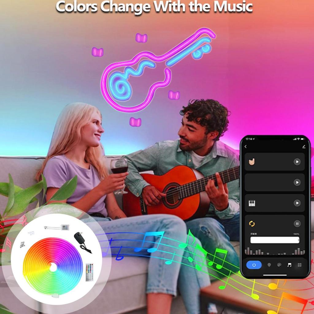 LED Light Strip Waterproof Color Changing Music Tape 16.4 FT Waterproof LED Strips Lights For Outdoor Home Living Room Bedroom