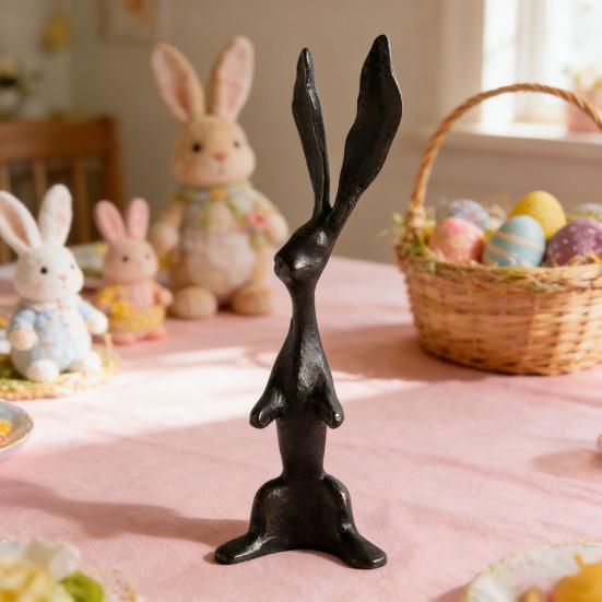 Resin Bunny Figurine Modern Standing Rabbit Statue Indoor Easter Tabletop Sculpture for Desk Cabinet Bookshelf Counter Home Bar Office Decor