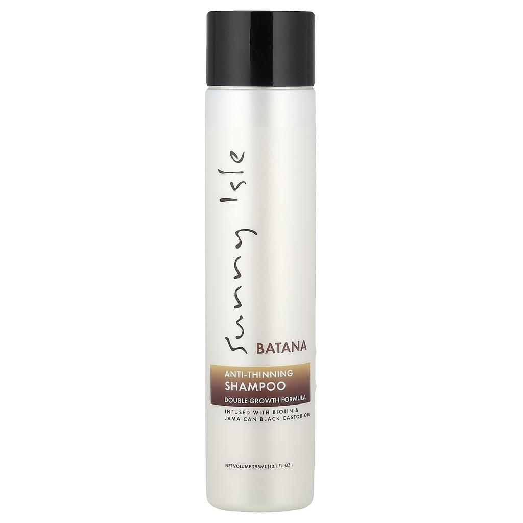 Product Description: Dual Growth Formula with Biotin and Jamaican Black Castor Oil, Sulfate-Free, Paraben-Free, Cruelty-Free. Sunny Isle's Natana Anti-Thinning Hydrating Shampoo effectively cleanses, hydrates, and strengthens hair with a dual growth formula made with batana and Jamaican black castor oil. Our batana shampoo is enriched with biotin to promote healthy growth while improving shine, softness, and manageability. Raw batana oil and naturally emollient Jamaican black castor oil leave hair soft and smooth. Suitable for all hair types. About Sunny Isle: Our Jamaican black castor oil seeds are grown and harvested in their natural environment by rural Jamaican farmers to support their families.
