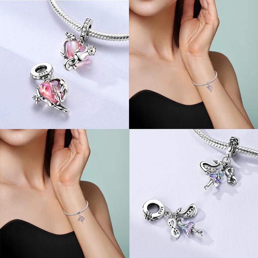 Charm Plataoriginales Luminous Rose Ballet Bead For Charms Copper Bracelet Beads Jewellery Making Women'S Gift