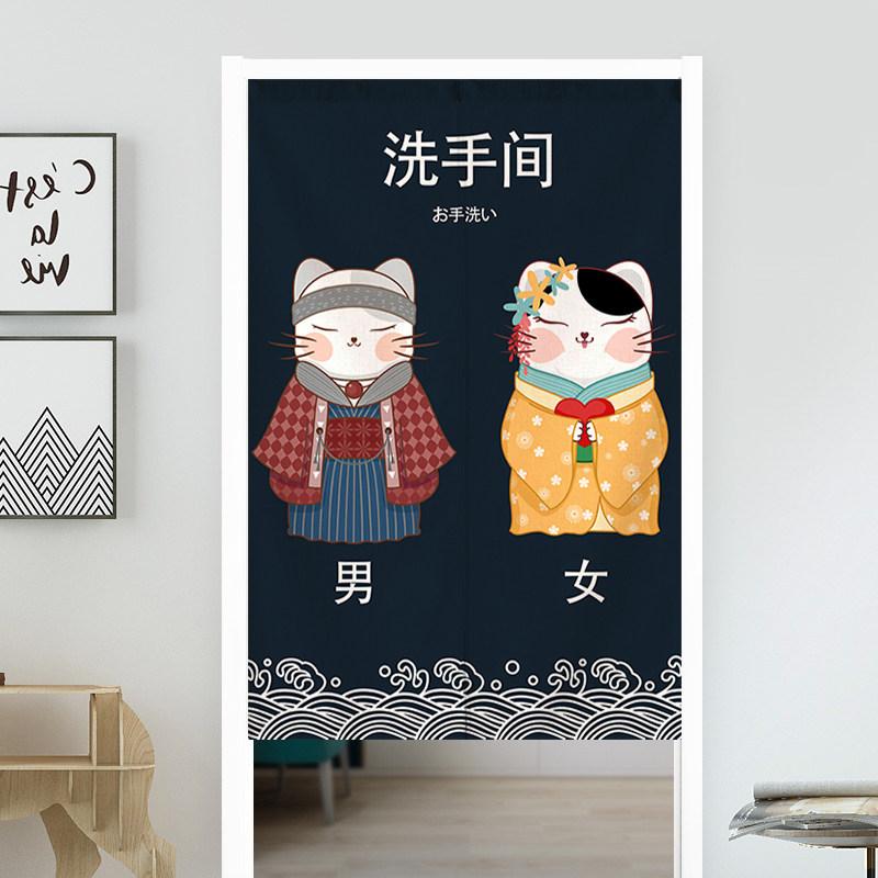 Japanese Door Curtain Cherry Blossom Chrysanthemum Ocean Wave Kitchen Doorway Partition Curtain Bedroom Bathroom Half Curtain