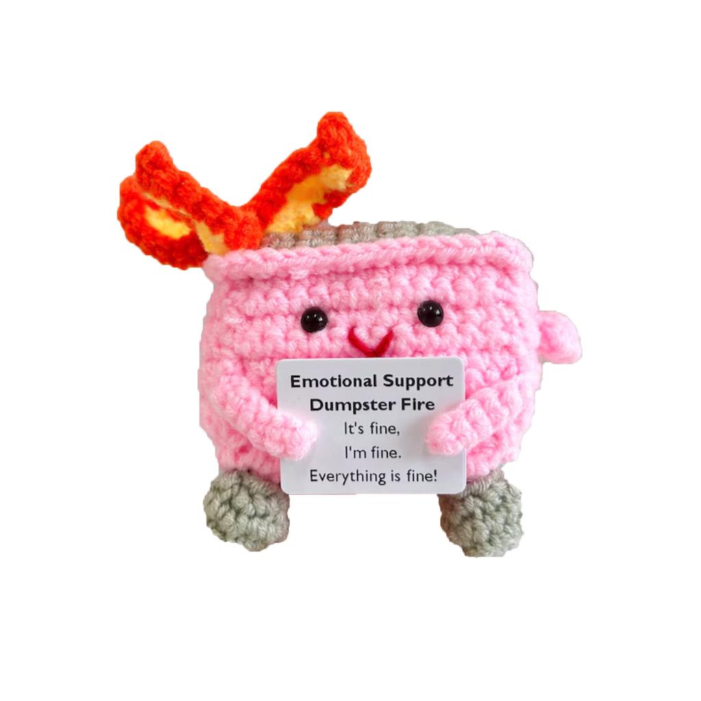 Handmade Crochet Dumpster Fire Plush Doll Emotional Support Dumpster Fire DollEncouraging Card Cute Knitting Toy Desk Decor
