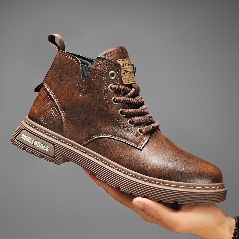 Autumn Men's Casual Short Boots High-top Lace-up Leather Martin Boots Retro