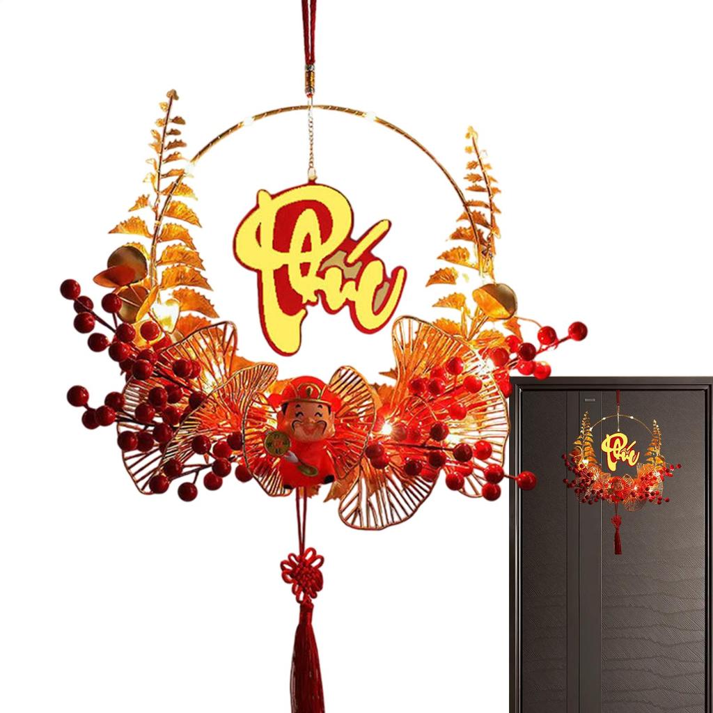 Vietnamese Lunar New Year Wreath Glowing Spring Festival Ornaments Luminous Iron Art New Year Fu Character Front Door Wreath