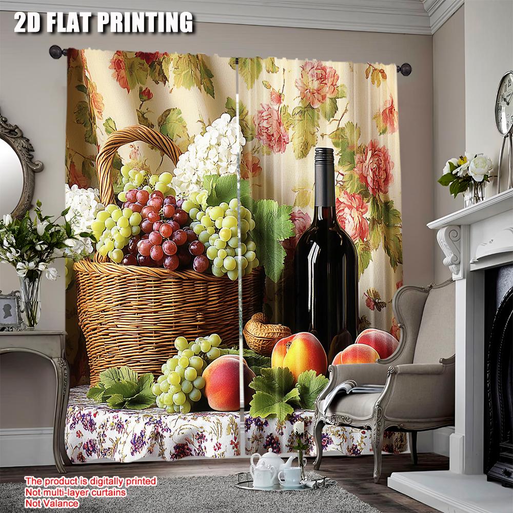 2Pcs Farmhouse Kitchen Curtains Vintage Grapes Fruits Oil Painting Rustic Flower Wine Art Printed Retro Country Living Room