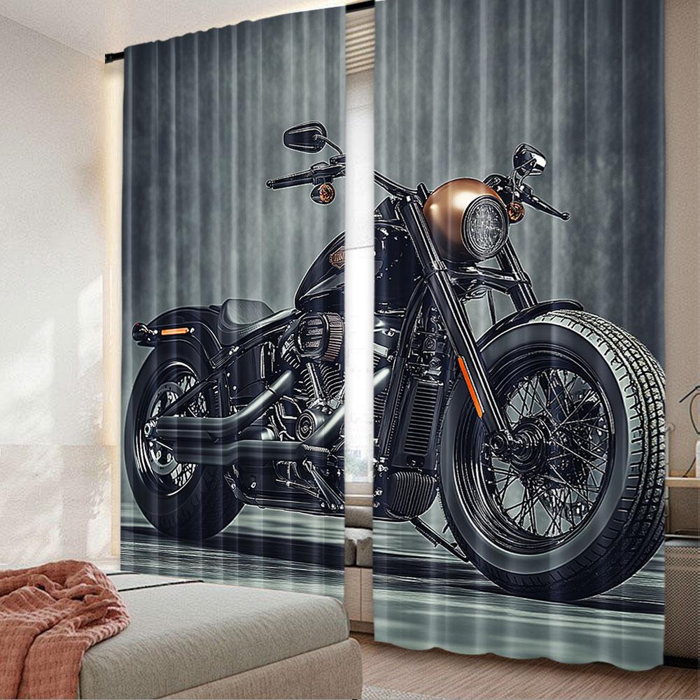 2Pcs Vintage Motorcycle Curtain Cool Classic Motorbike Home Decor Suitable For Bedroom Bathroom Living Room Dining Room Study