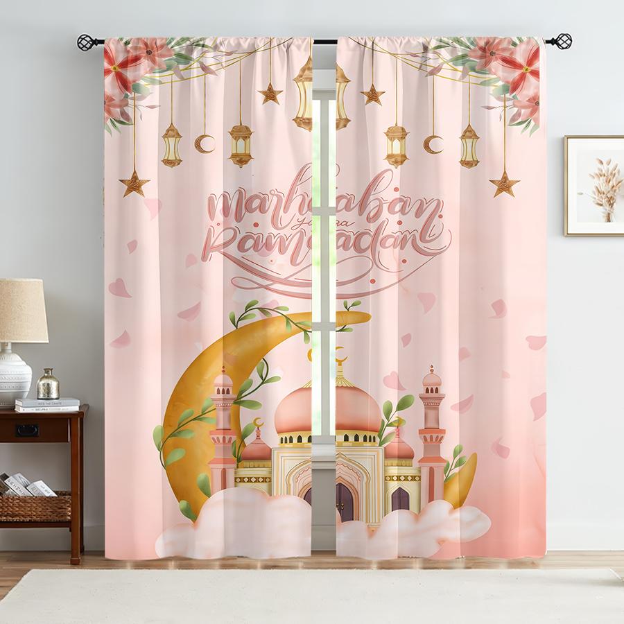 2PCS Watercolor Powder Ramadan Decoration Curtains Sweet Breeze Living Room and Bedroom Drawbar Pocket Decoration