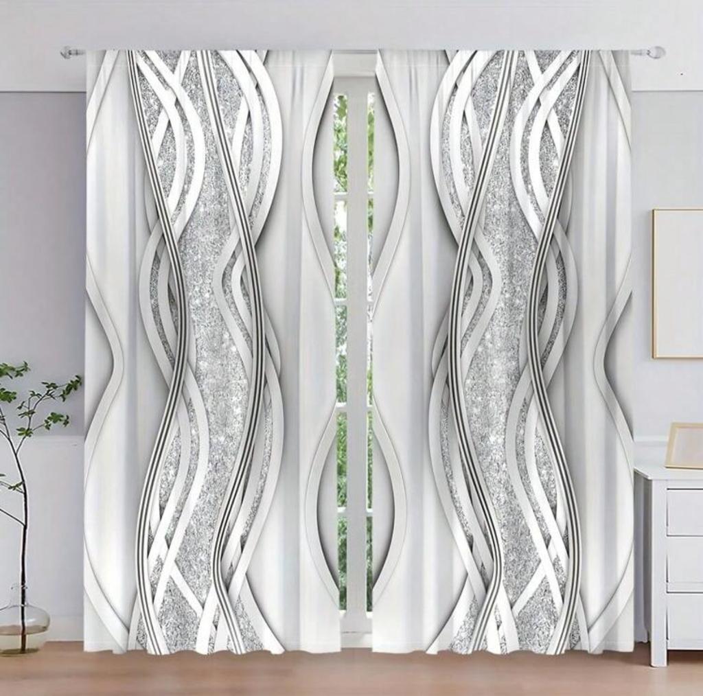 2 Pieces - Silver-gray Line Pattern Printed Curtains Bedroom and Living Room Home Decoration Room Decoration