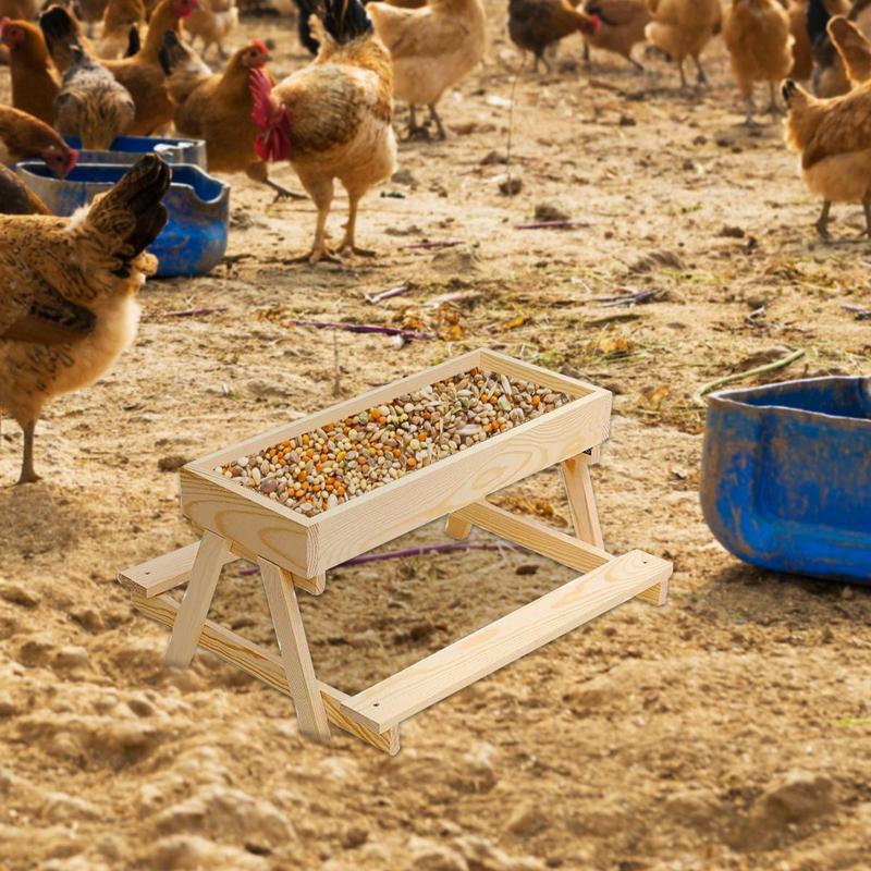 Chicken Food Feeder Squirrel Wild Bird Feeder Wooden Mesh Bottom Stand Keeps Food Fresh Dry For Poultry Turkey Duck Flock