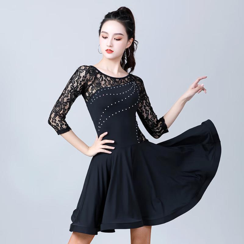 OEING Women's Long Sleeve Lace Latin Dance Dress
