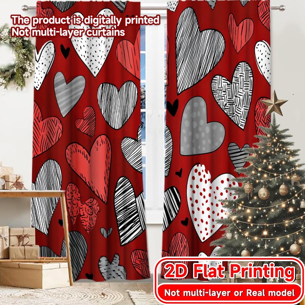 2D Flat Printing 2pcs Heartful Patterns Pattern Modern Curtains Versatile Fabric Curtains Festive Perfect for Kitchen Living