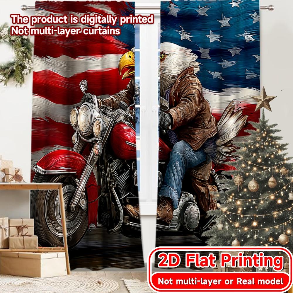 2D FLAT PRINTING 2pcs Curtains (Without Rod) American Eagle On Motorcycle Valentine Is Day Festival Popular Curtains&Drapes